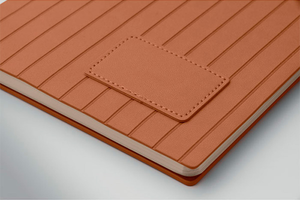 - Blødt, ribbet smokey PU-omslag (40% genanvendt post-consumer materiale og 60% PU)