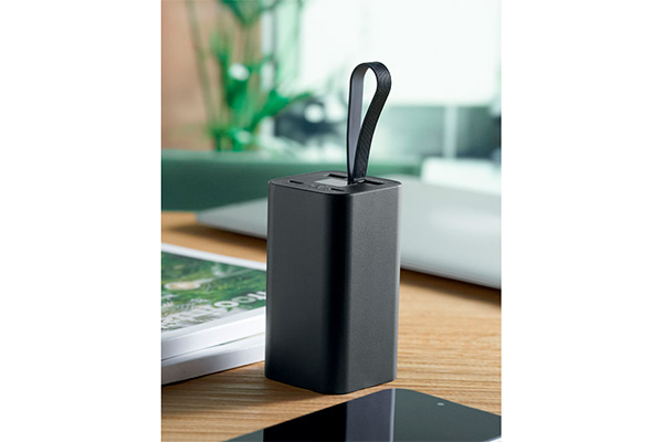 - Stor powerbank på 20.000 mAh (73 Wh) i genbrugsaluminium